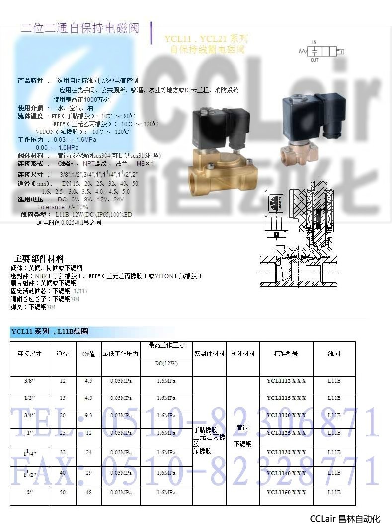 YCL1112,YCL1115, YCL1120, YCL1125, YCL1132, YCL1140, YCL1150,二位二通自保持電磁閥