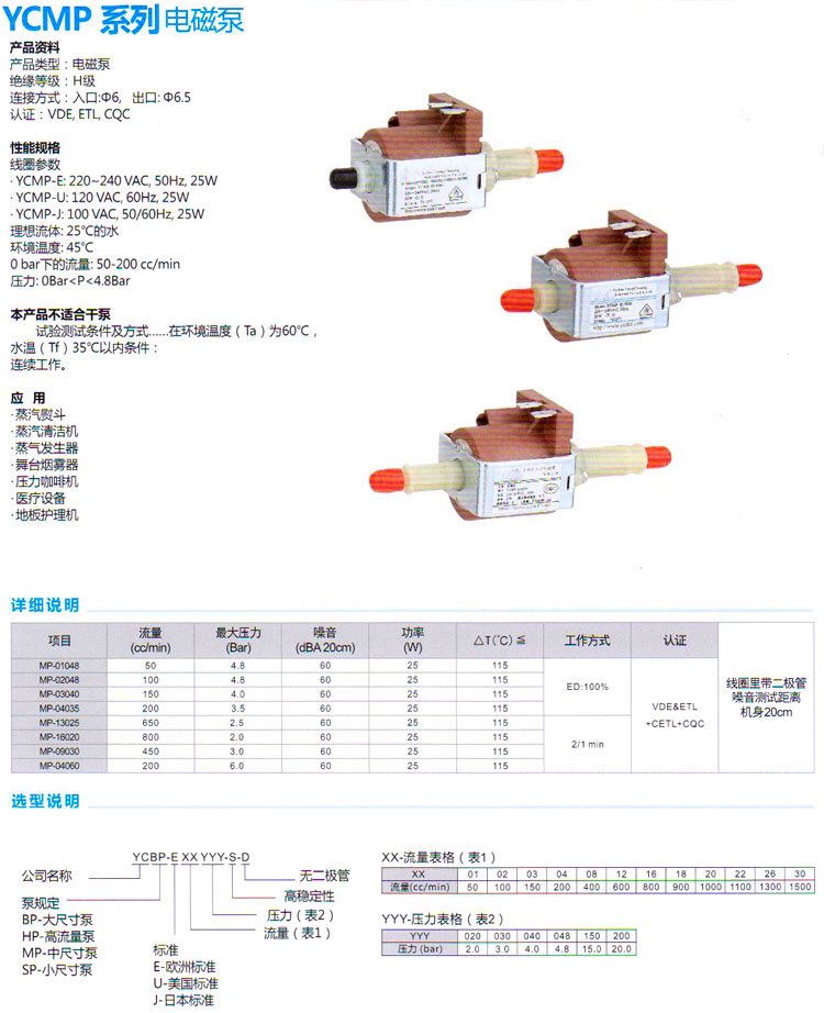 詳細信息 MP-01048,MP-02048,MP-03040,MP-04035,MP-13025,MP-16020,MP-09030,MP-04060,電磁泵