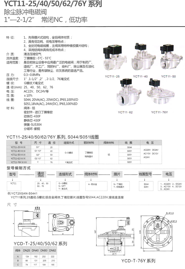 詳細(xì)信息 YCT11-25,YCT11-40,YCT11-50,YCT11-62,YCT11-76Y,除塵脈沖電磁閥