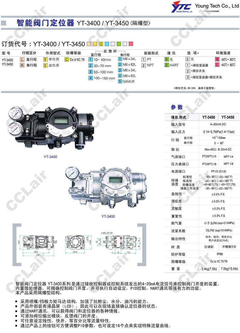 YT-3400,YT-3450,YTC智能閥門定位器