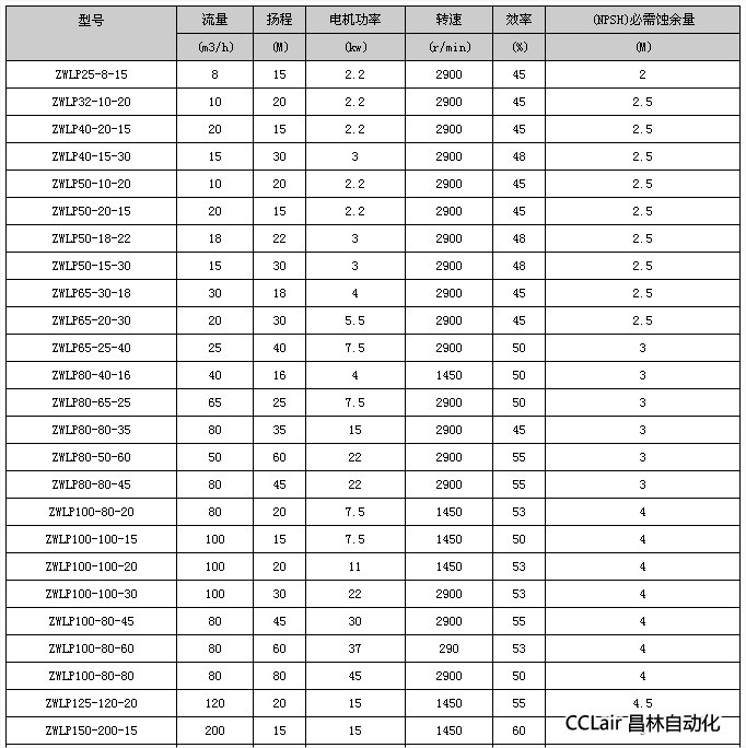 ZWLP65-30-18,ZWLP65-20-30,ZWLP65-25-40,ZWLP80-40-16,ZWLP100-100-15,