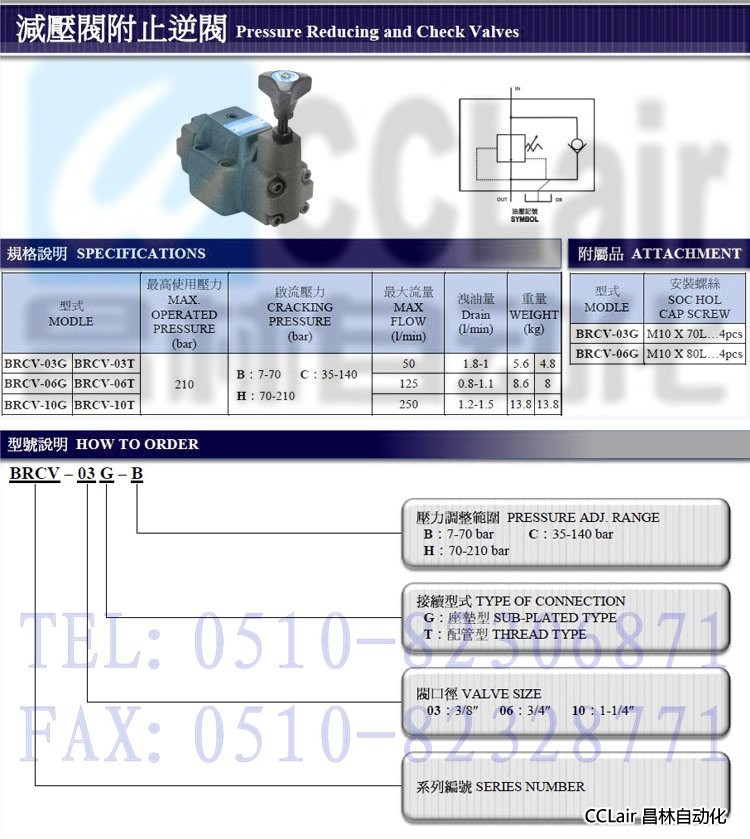 BRCV-03G-B,BRCV-03G-C,BRCV-03G-H,BRCV-03T-B,BRCV-03T-C,減壓閥附止逆閥