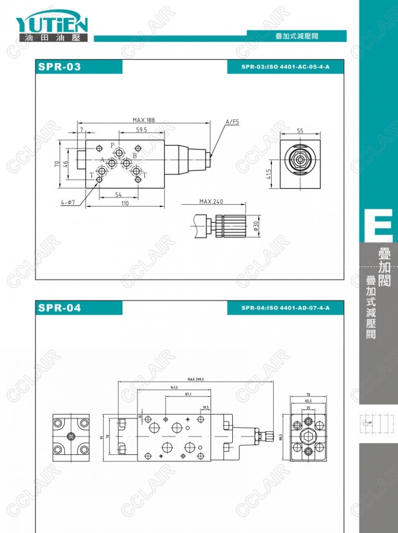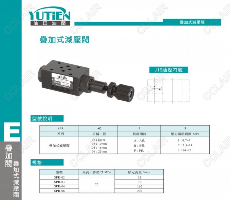 YUTIEN油田疊加式減壓閥SPR-02A,PR-02B,SPR-03B,SPR-03P,SPR-04B,SPR-04P,SPR-06A,SPR-06B