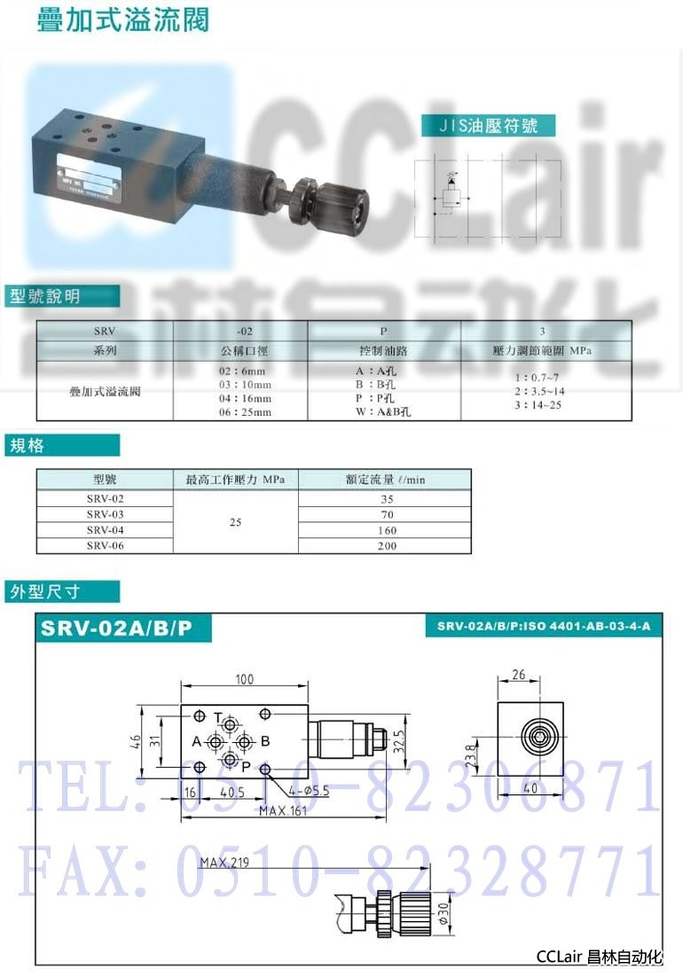 SRV-03A,SRV-03B,SRV-03P,SRV-03W,SRV-02A,SRV-02B,疊加式溢流閥
