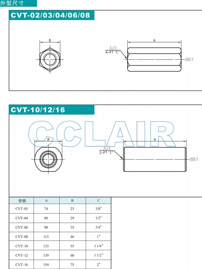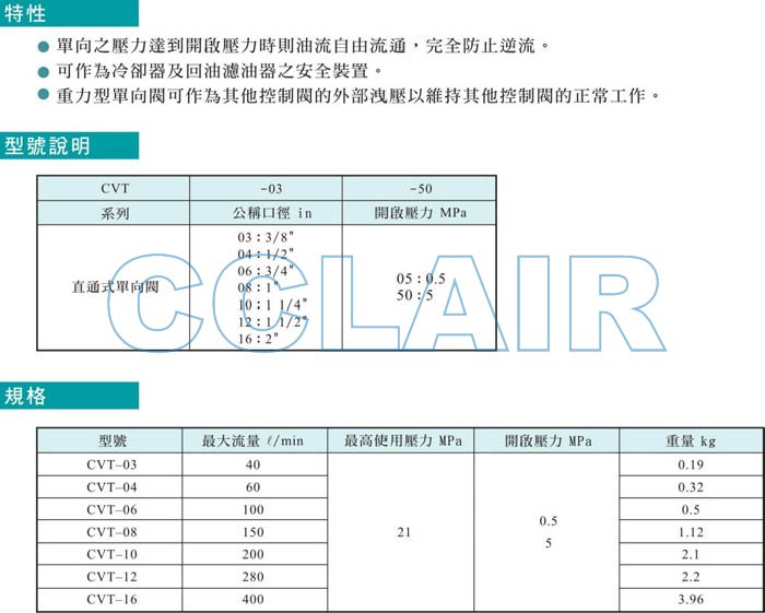 CVT-03,CVT-04,CVT-06,CVT-08,CVT-10,CVT-12,CVT-16,直通式單向閥