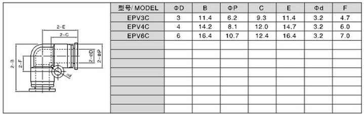 詳細(xì)信息 EPV3C,EPV4C,EPV6C,L型二通接頭