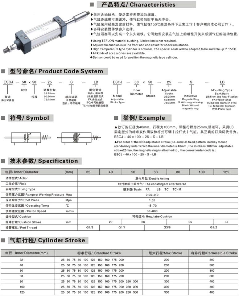 ESCJ-32*25,ESCJ-40*50,ESCJ-50*75,ESCJ-63*80,ESCJ-80*100,標(biāo)準(zhǔn)氣缸