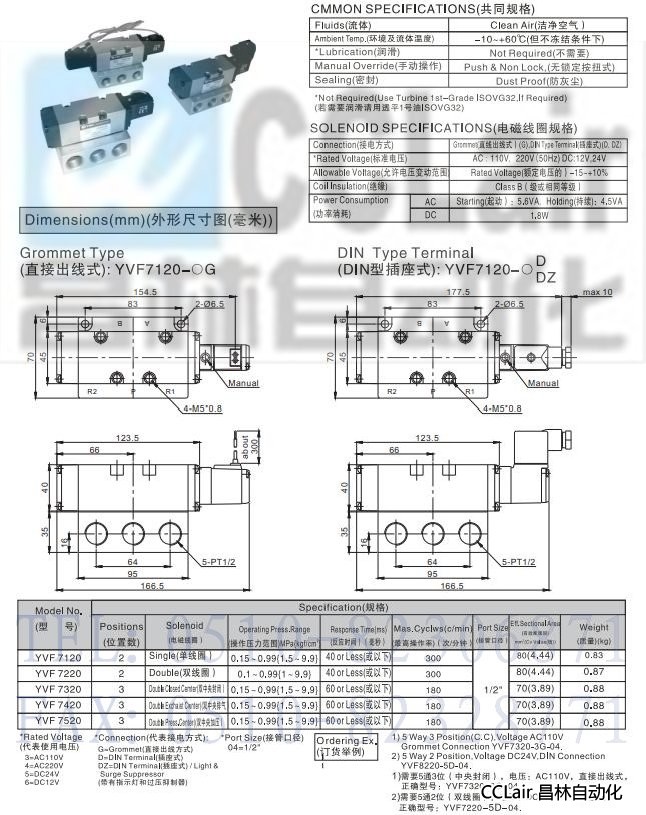 YVF7120,YVF7220,YVF7320,YVF7420,YVF7520,五通先導型電磁閥