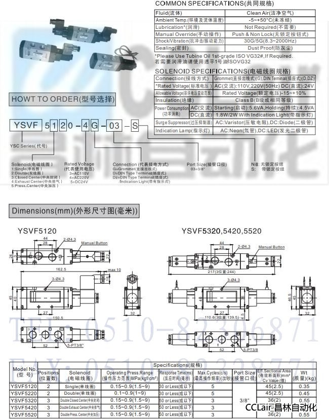 YSVF5120,YSVF5220,YSVF5320,YSVF5420,YSVF5520,五通先導(dǎo)型電磁閥