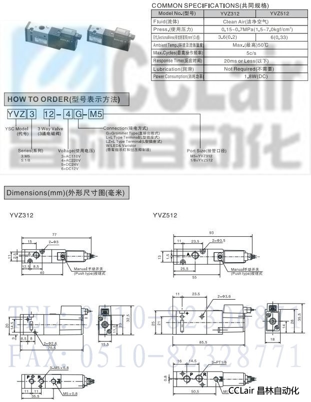 YVZ312,YVZ512,YVZ312-4G-M5,3通先導型電磁閥