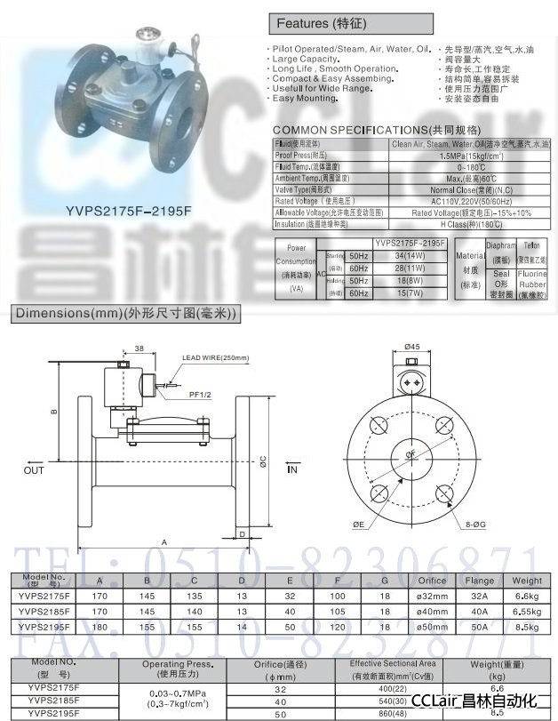YVPS2175F,YVPS2185F,YVPS2195F,2通先導(dǎo)型電磁閥
