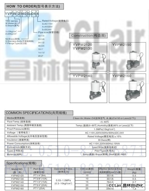 詳細(xì)信息 YVPW2120,YVPW2130,YVPW2140,YVPW2150,YVPW2160,2通先導(dǎo)型電磁閥