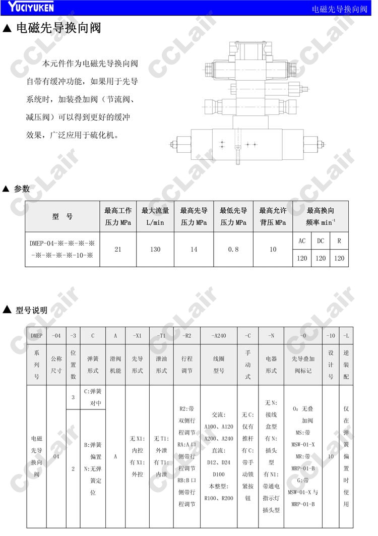 型號(hào): DMEP-04-2NA-R2-A100-0-10,DMEP-04-2NA-X1-T1-R2-A100-C-N-0-10,DMEP-04-2NA-X1-R2-A100-C-N-0-10,電磁先導(dǎo)換向閥