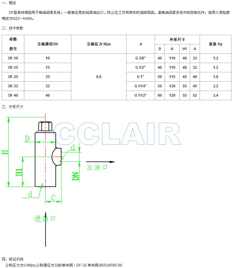 詳細(xì)信息 DF-10,DF-15,DF-25,DF-DF-32,DF-40,單向閥