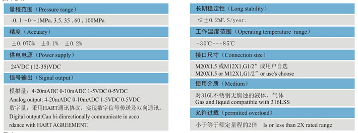 詳細信息 YDZ322-III,通訊智能壓力變送器 YDZ322-III智能壓力變送器由316L隔離膜壓力變送器、高性能微處理器、集成放大線路、高穩(wěn)定恒流源組成,對傳感器非線性、溫度漂移進行修正補償,通過手操器在線調(diào)整變送器參數(shù),實現(xiàn)精確的數(shù)字/數(shù)據(jù)傳輸、現(xiàn)場設備診斷、遠程雙向通訊等,具有精度高、穩(wěn)定性好、操作方便等優(yōu)點。 技術(shù)參數(shù)