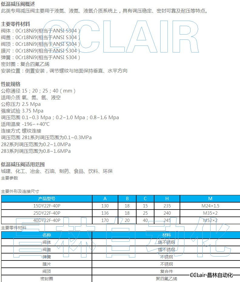 詳細(xì)信息 DY22F-16P,DY22F-25P,DY22F-40P,低溫減壓閥