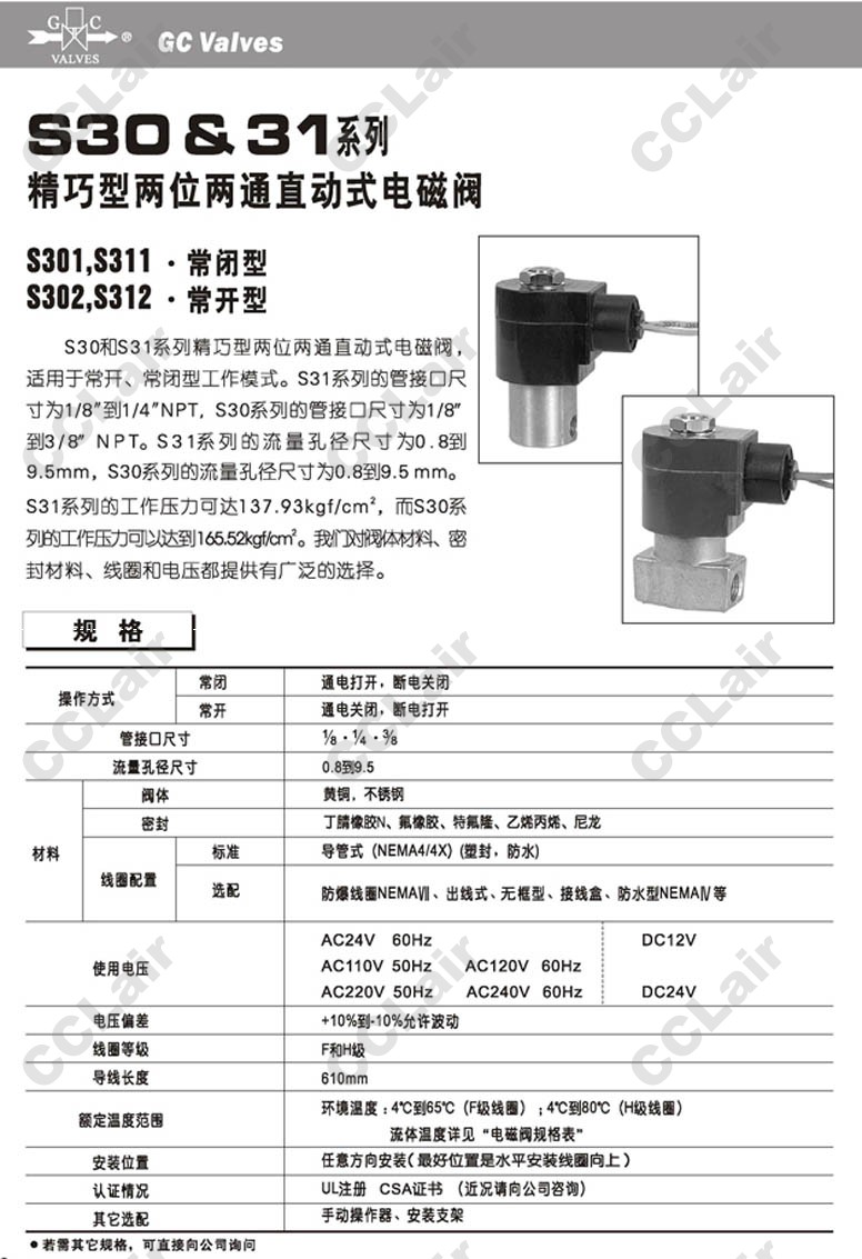 S311GF02C2AC3,S311GF02C2AC5,S311GF02C2AC7,S311GF02C2AC9,GC Valves S311GF02C2AD3,S311GF02C2AD5,