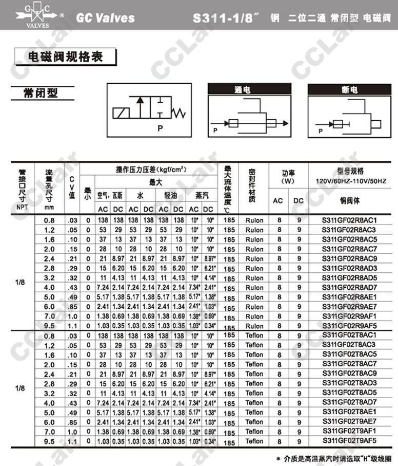 S311GF02C8BE1,S311GF02N8BC1,S311GF02N8BC3,GC Valves S311GF02N8BC5,S311GF02N8BC7,S311GF02N8BC9,