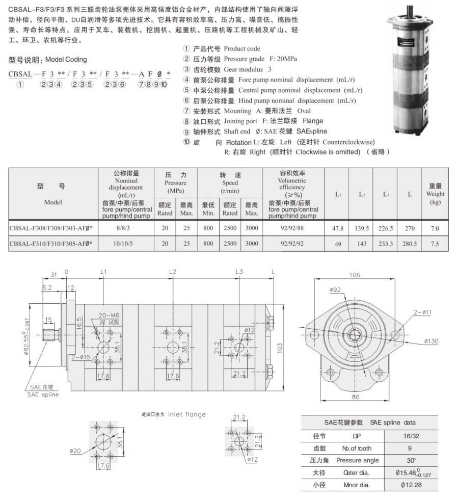 CBSAL-F308/F308/F303-AF,CBSAL-F310/F310/F305-AF,三聯(lián)齒輪油泵