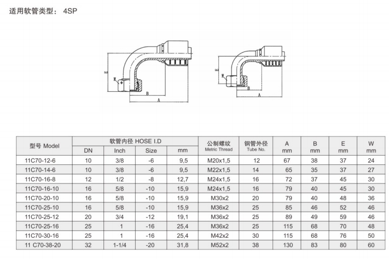 11C70-12-6,11C70-14-6,11C70-16-8,11C70-16-10,11C70-20-10,11C70-25-10,90度彎接頭