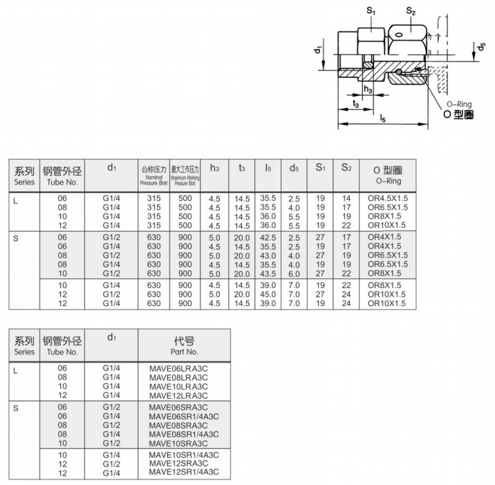 型號: MAVE06LRA3C,MAVE08LRA3C,MAVE10LRA3C,MAVE12LRA3C,MAVE06SRA3C,對接式壓力表接頭