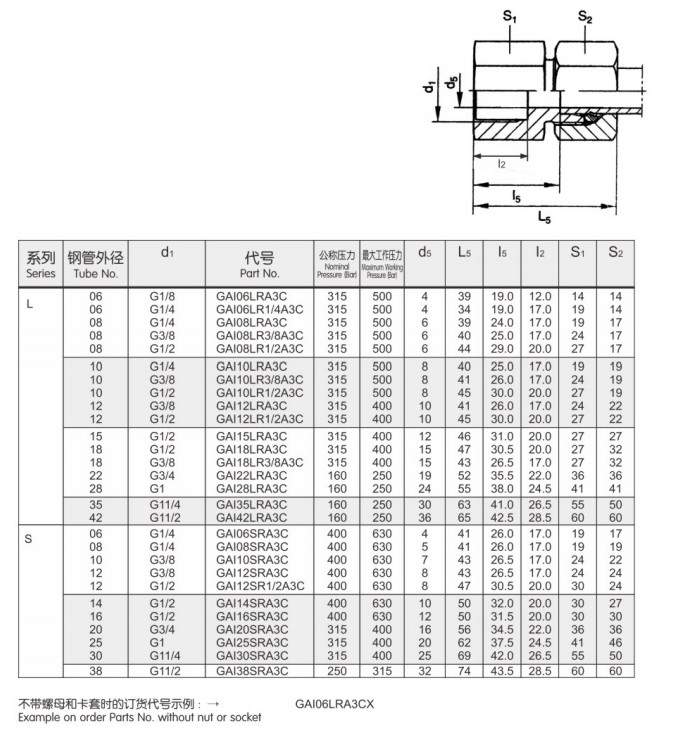 GAI06LRA3C,GAI08LRA3C,GAI10LRA3C,GAI12SRA3C,GAI14SRA3C,直通內螺紋接頭 詳細信息 GAI06LRA3C,GAI08LRA3C,GAI10LRA3C,GAI12SRA3C,GAI14SRA3C,直通內螺紋接頭
