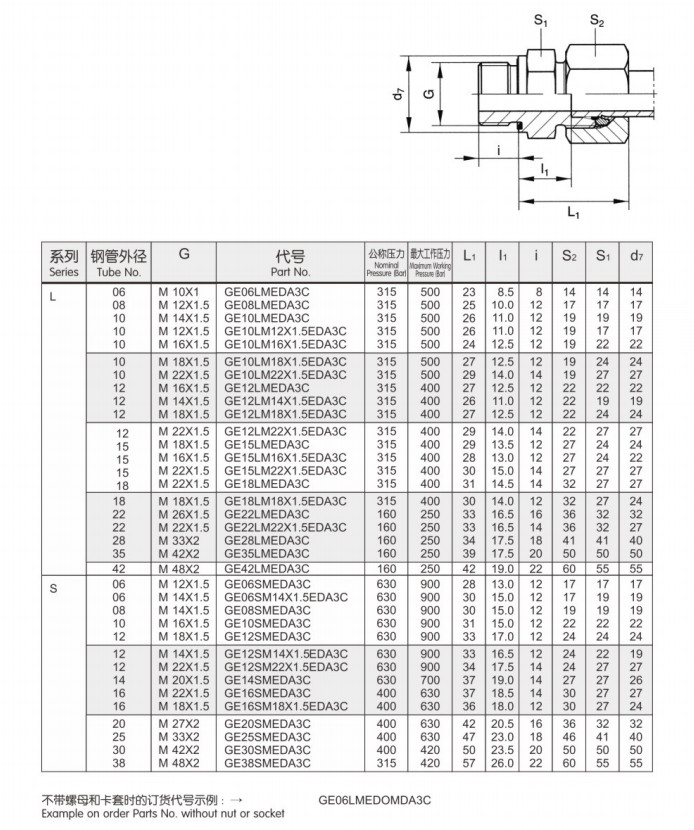 首頁 > 產(chǎn)品&解決方案 > GE06LMEDA3C,GE15LMEDA3C,GE16SMEDA3C,GE10LM12X1.5EDA3C,直通接頭