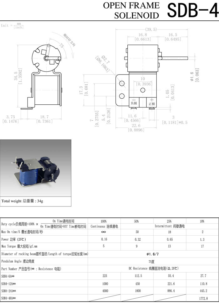 SDB4-6A,SDB4-12A,SDB4-24A,SDB4-48A,旋擺式電磁鐵