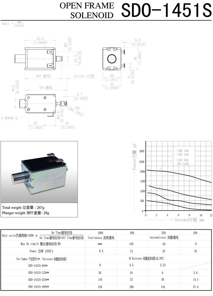 SDO-1451S-6A,SDO-1451S-12A,SDO-1451S-24A,SDO-1451S-48A,直動(dòng)電磁鐵
