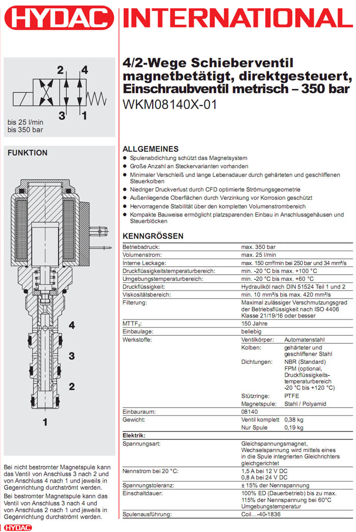 WKM08140X-01-C-N-24DG,WKM08140X-01-C-N-230AG,HYDAC電磁4/2方向滑閥 |