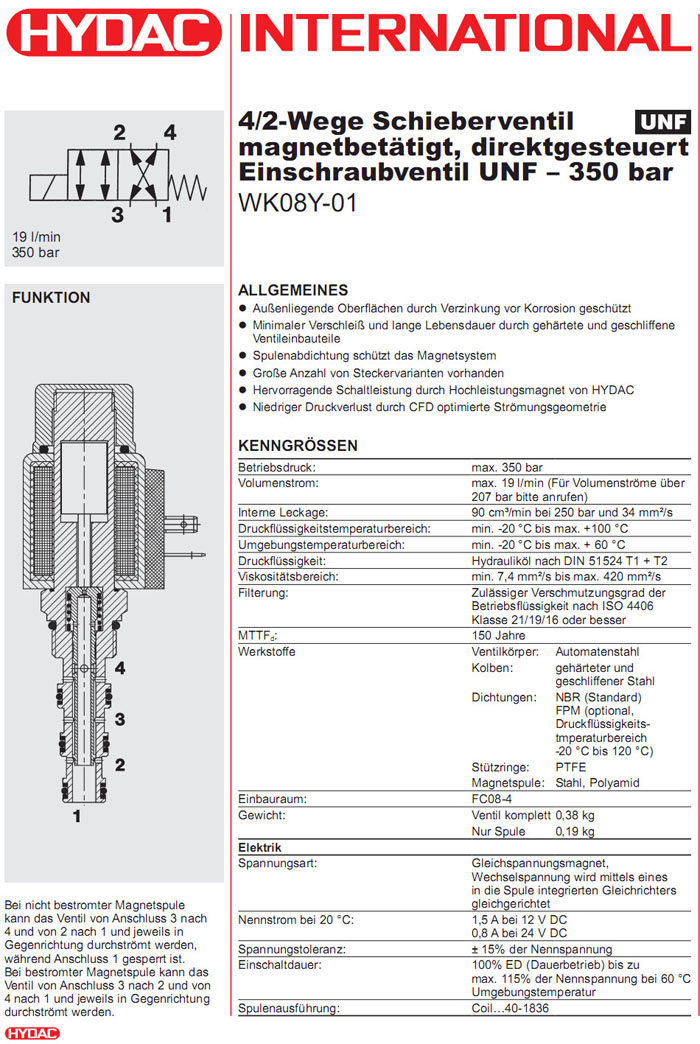 WK08Y-01-C-N-24DG,WK08Y-01-C-N-230AG,HYDAC電磁4/2方向滑閥