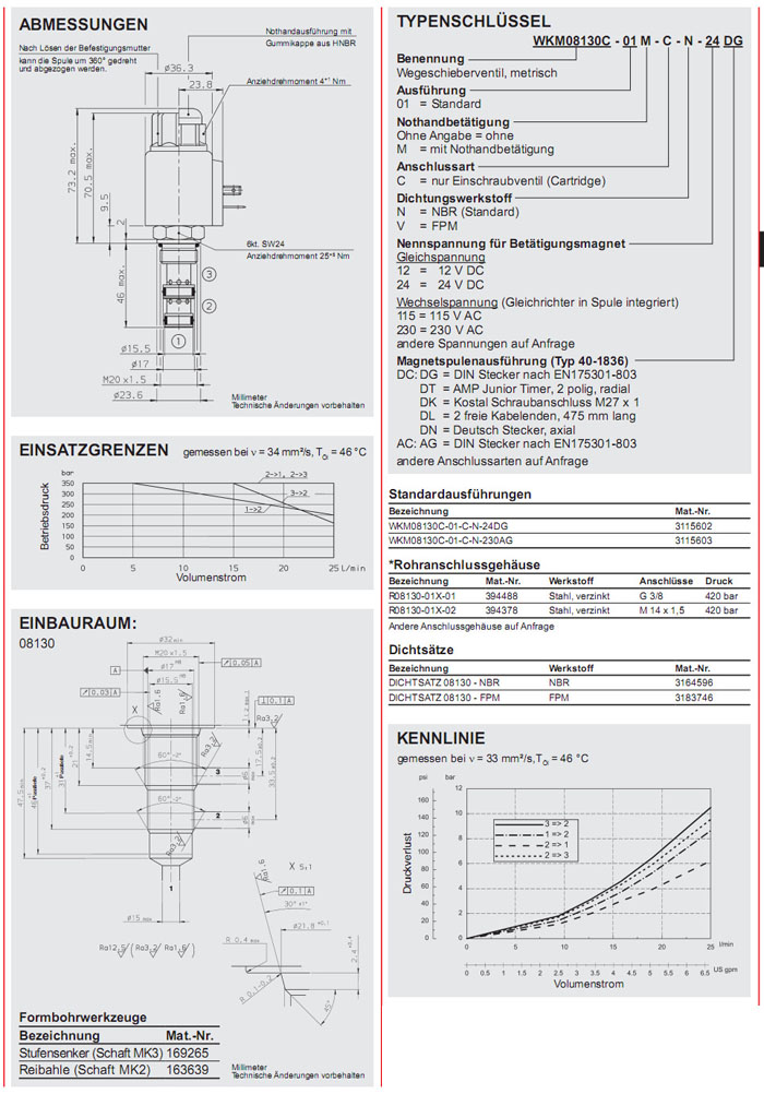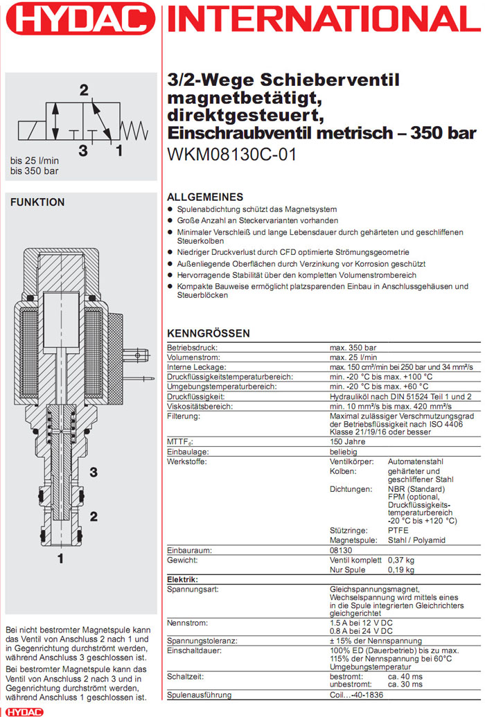 WKM08130C-01-C-N-24DG,WKM08130C-01-C-N-230AG,HYDAC二位三通方向滑閥 |