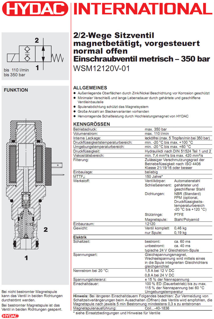 WSM12120V-01-C-N-12DG,WSM12120V-01-C-N-24DG,HYDAC電磁2/2方向座閥