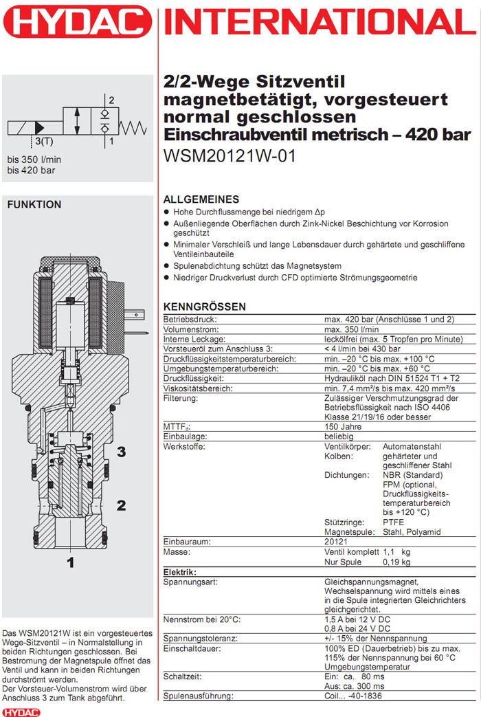 WSM20121W-01-C-N-12DG,WSM20121W-01-C-N-24DG,HYDAC電磁2/2方向座閥