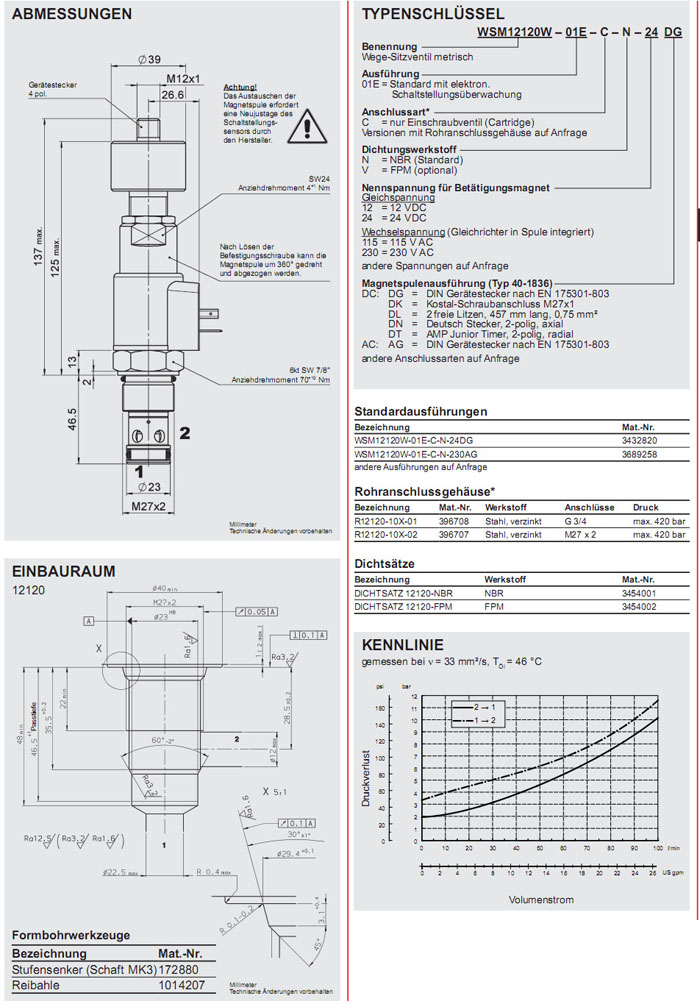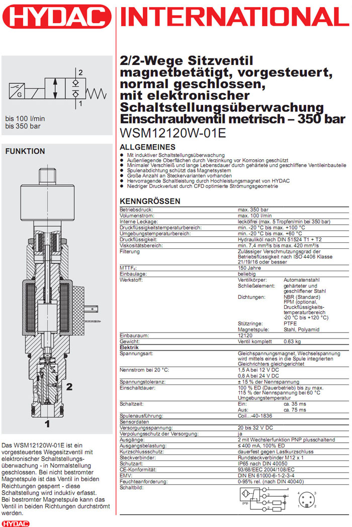 WSM12120W-01E-C-N-24DG,WSM12120W-01E-C-N-230AG,HYDAC電磁2/2方向座閥