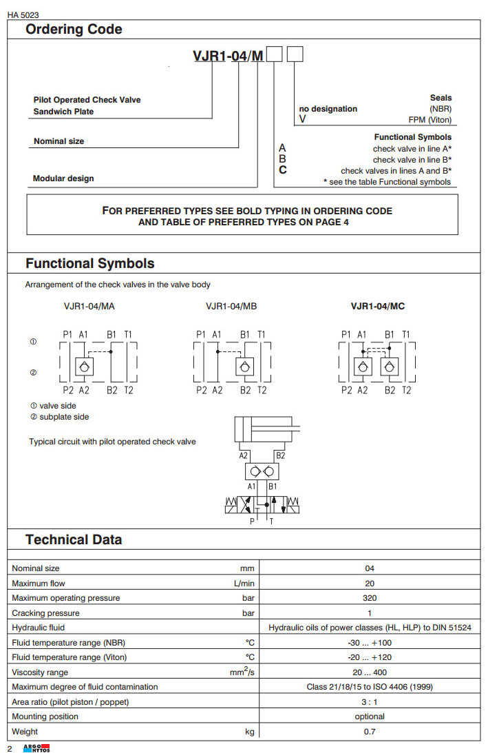 VJR1-04/MA,VJR1-04/MB,VJR1-04/MC,ARGO液控單向閥