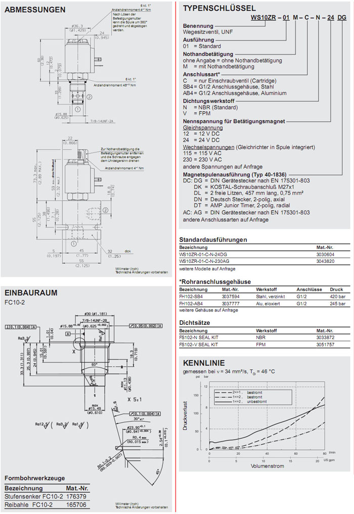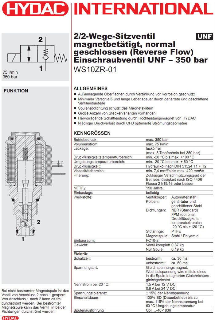 WS10ZR-01J-C-N-24DG,WS10ZR-01J-C-N-230AG,HYDAC電磁2/2方向座閥