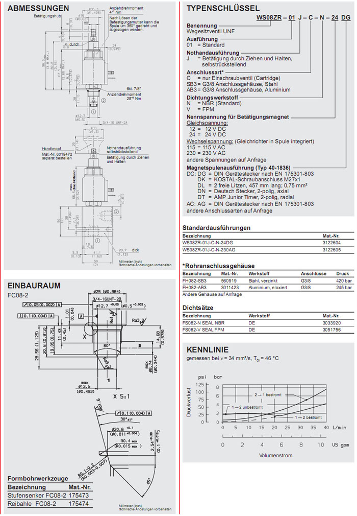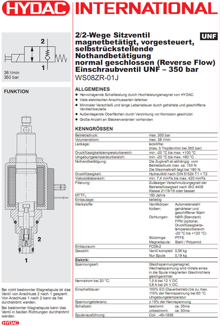 WS08ZR-01J-C-N-24DG,WS08ZR-01J-C-N-230AG,HYDAC電磁2/2方向座閥