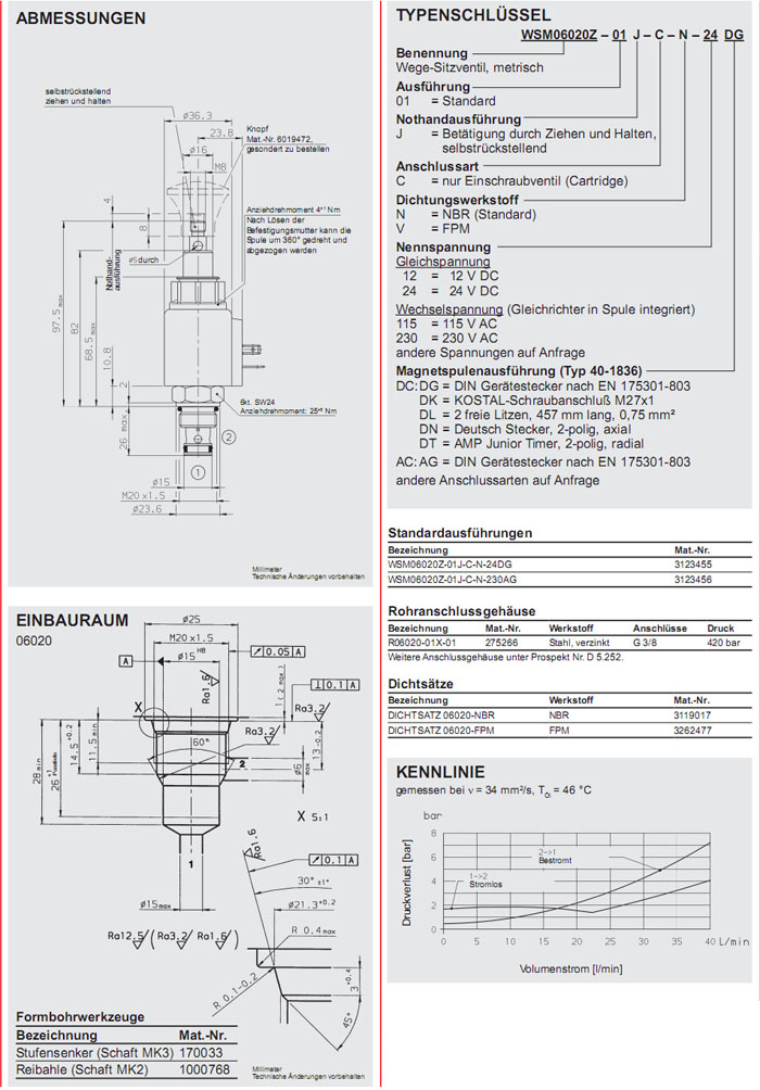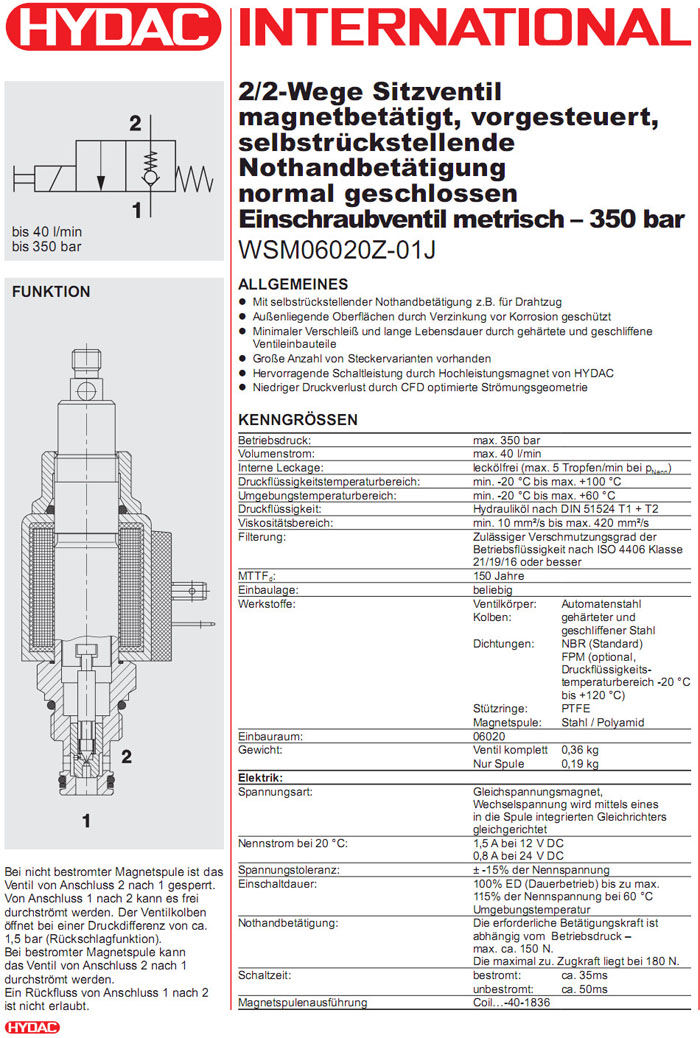 WSM06020Z-01J-C-N-24DG,WSM06020Z-01J-C-N-230AG,HYDAC電磁2/2方向座閥