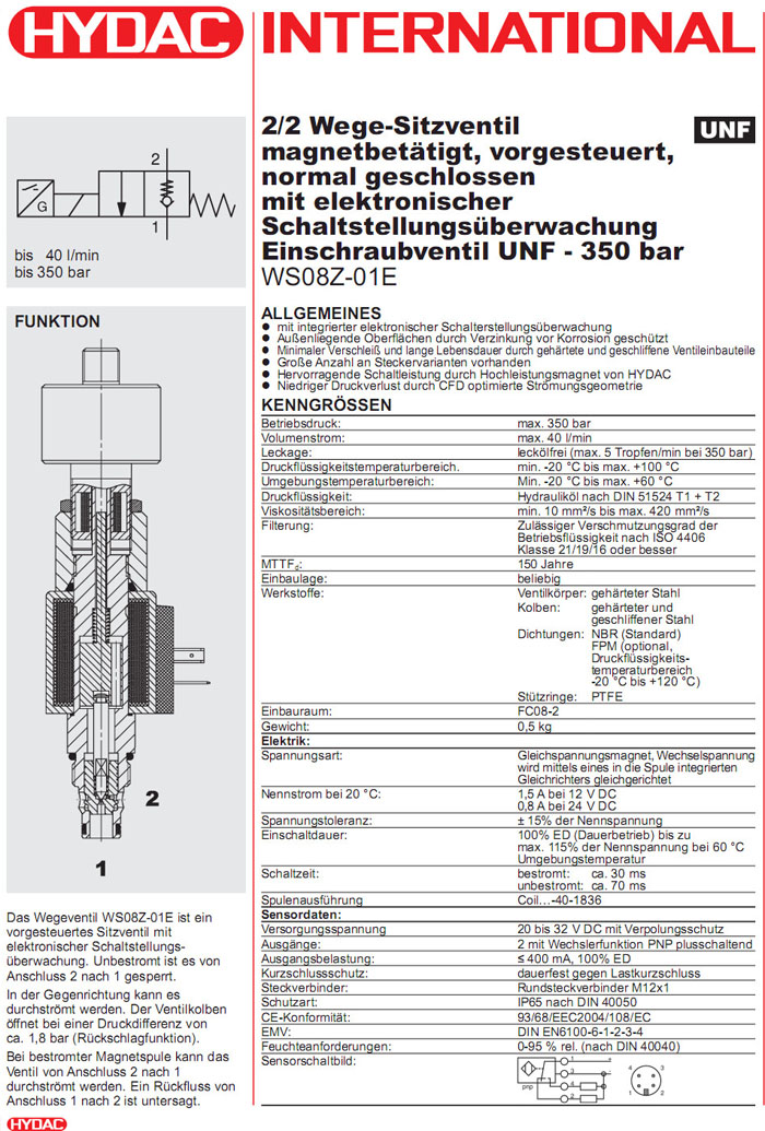 WS08Z-01E-C-N-12DG,WS08Z-01E-C-N-24DG,WS08Z-01E-C-N-230AG,HYDAC電磁2/2方向座閥 |