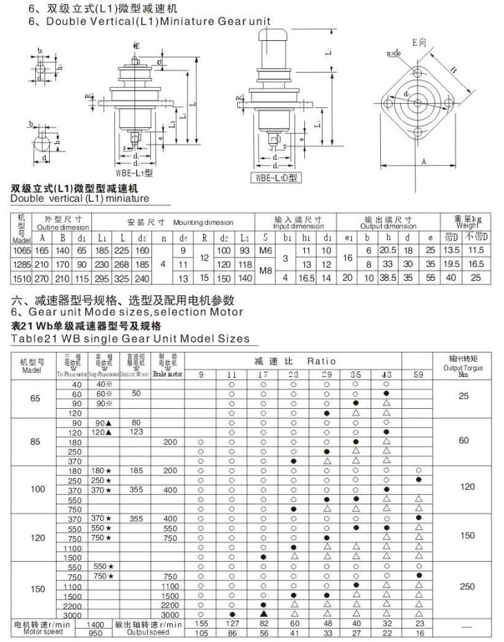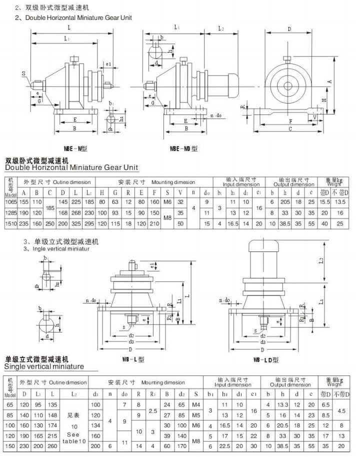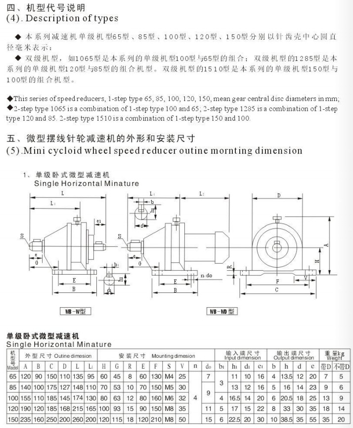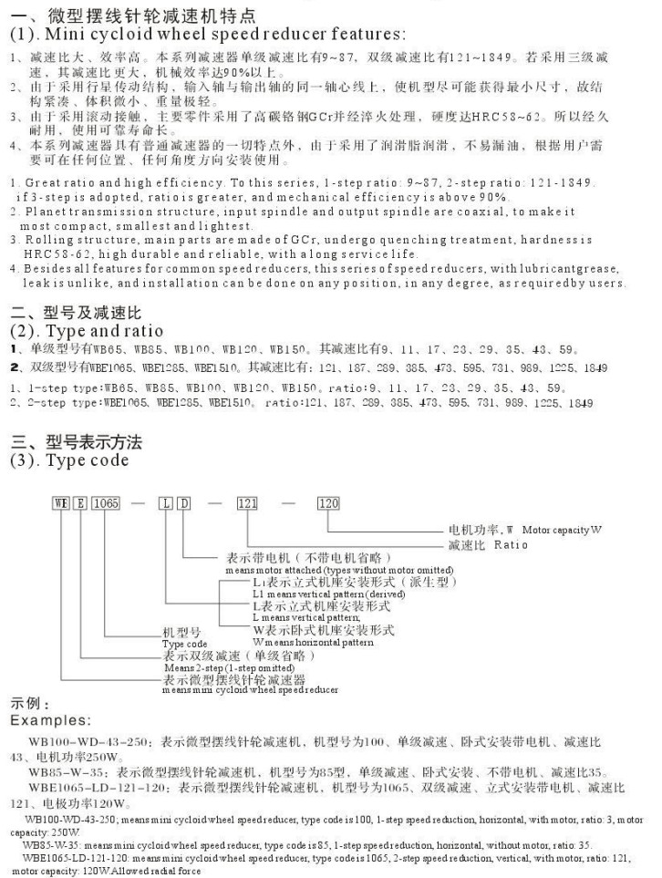 WB65,WB85,WB100,WB120,WB150,WBE1065,WBE1285,WBE1510,微型擺線針輪減速機 |
