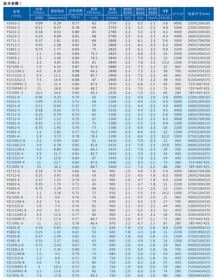 YS/Y2系列鋁殼三相異步電動(dòng)機(jī),符全國際電工協(xié)會(huì)(IEC)有關(guān)規(guī)定,選用優(yōu)質(zhì)原材料,