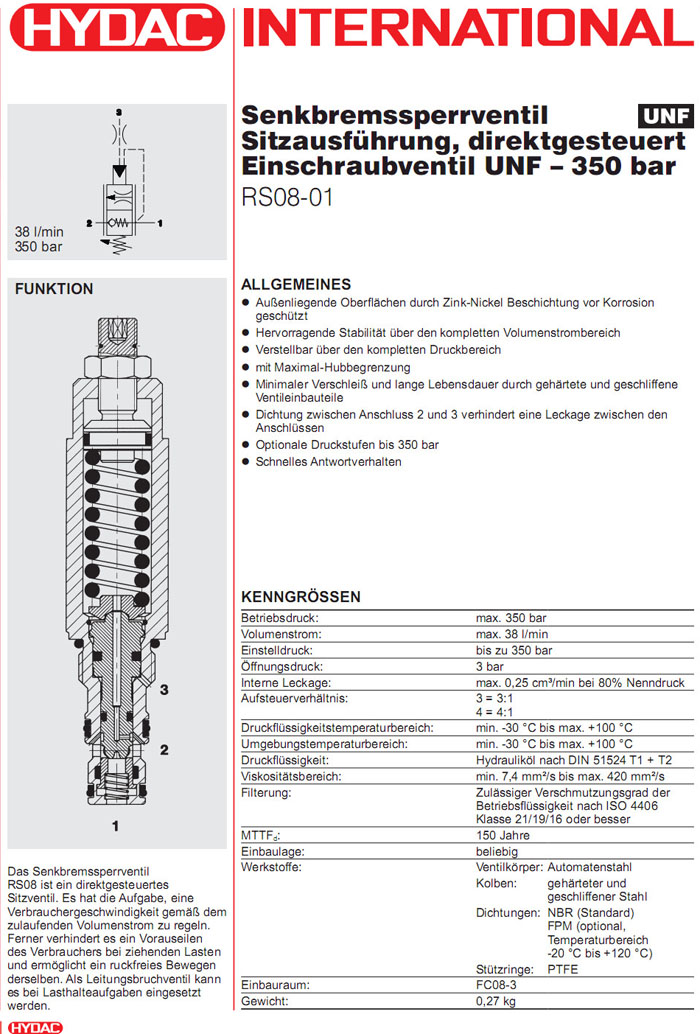 RS08-01-C-N-3-500V,RS08-01-C-N-4-500V,HYDAC反平衡閥