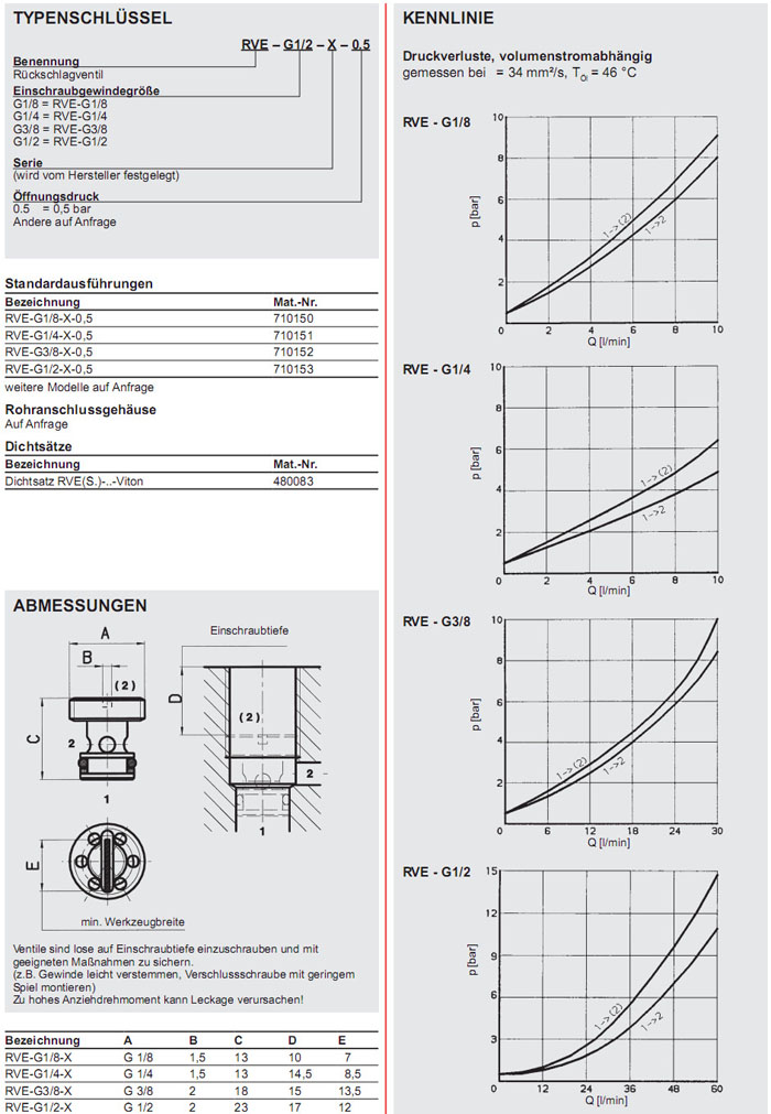 RVE-G1/8-X,RVE-G1/4-X,RVE-G3/8-X,RVE-G1/2-X,HYDAC止回閥