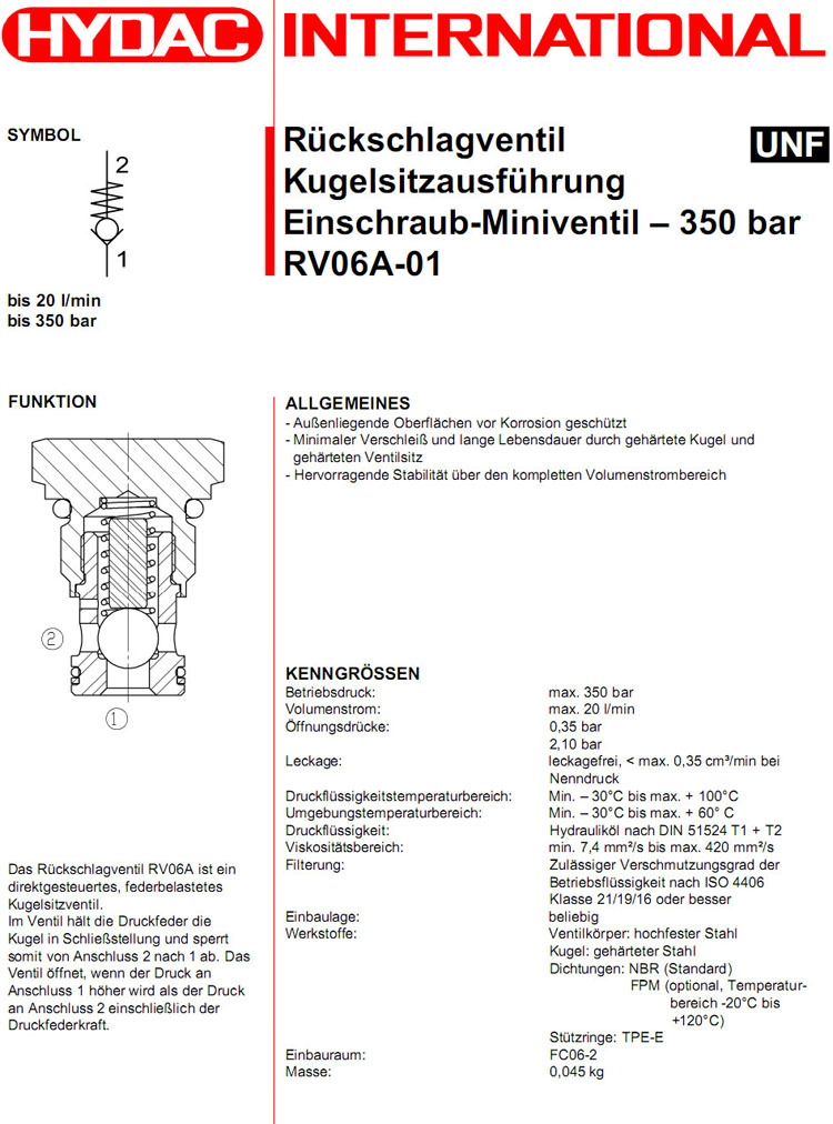 RV06A-01-C-N-05,RV06A-01-C-N-30,HYDAC止回閥