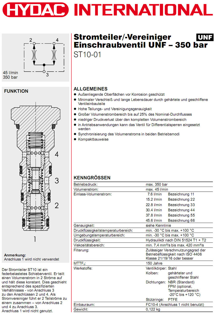 ST10-01-C-N-11,ST10-01-C-N-22,ST10-01-C-N-33,ST10-01-C-N-44,ST10-01-C-N-55,ST10-01-C-N-66,HYDAC流量分配/合成器