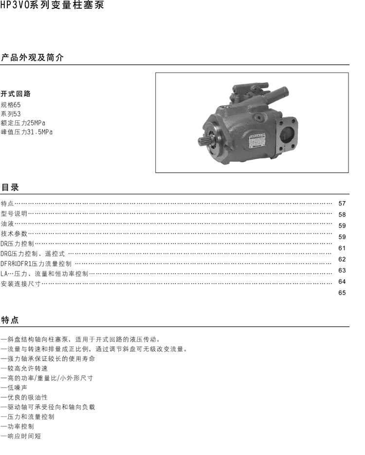 HP3VO65LA5DS/53R,HP3VO65LA6DS/53R,HP3VO65LA7DS/53R,HP3VO65LA8DS/53R,HP3VO65LA9DS/53R,變量柱塞泵