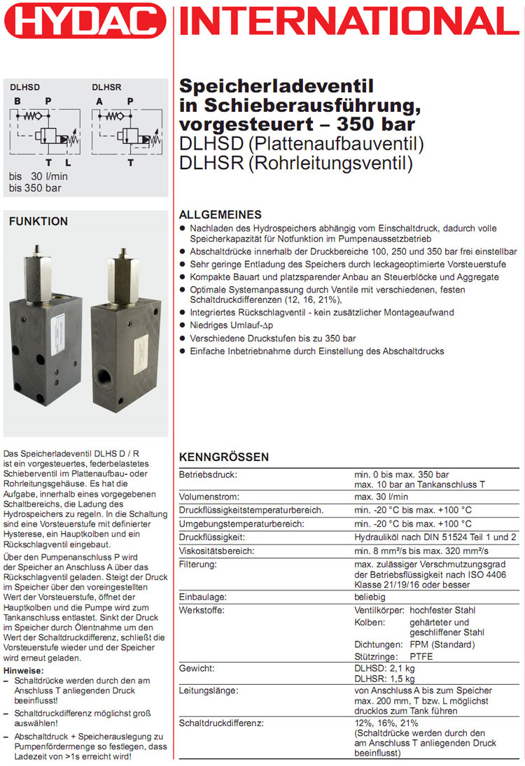 DLHSD-01X,DLHSR-01X,DLHSD-01X-12/100,DLHSR-01X-21/250,DLHSR-01X-12/250,HYDAC蓄能器充電閥