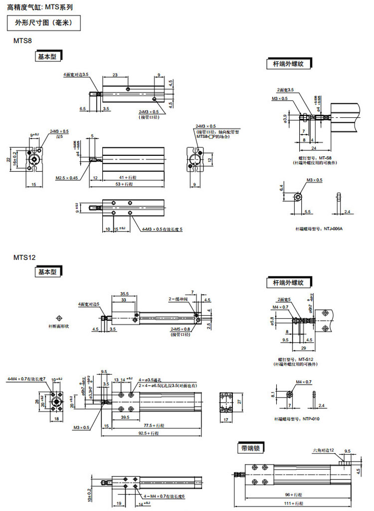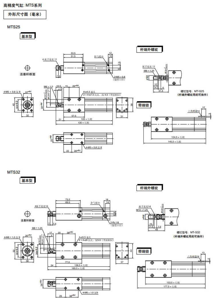 MTS8-5,MTS12-25,MTS16-25,MTS20-25,MTS25-25,MTS32-25,MTS40-25,MTS8-10,SMC高精度氣缸
