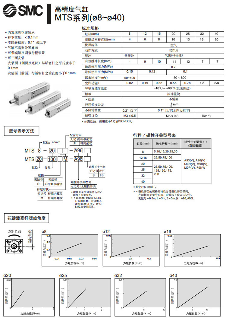 MTS32-200,MTS40-50,MTS40-75,MTS40-100,MTS40-125,MTS40-150,MTS40-175,MTS40-200,